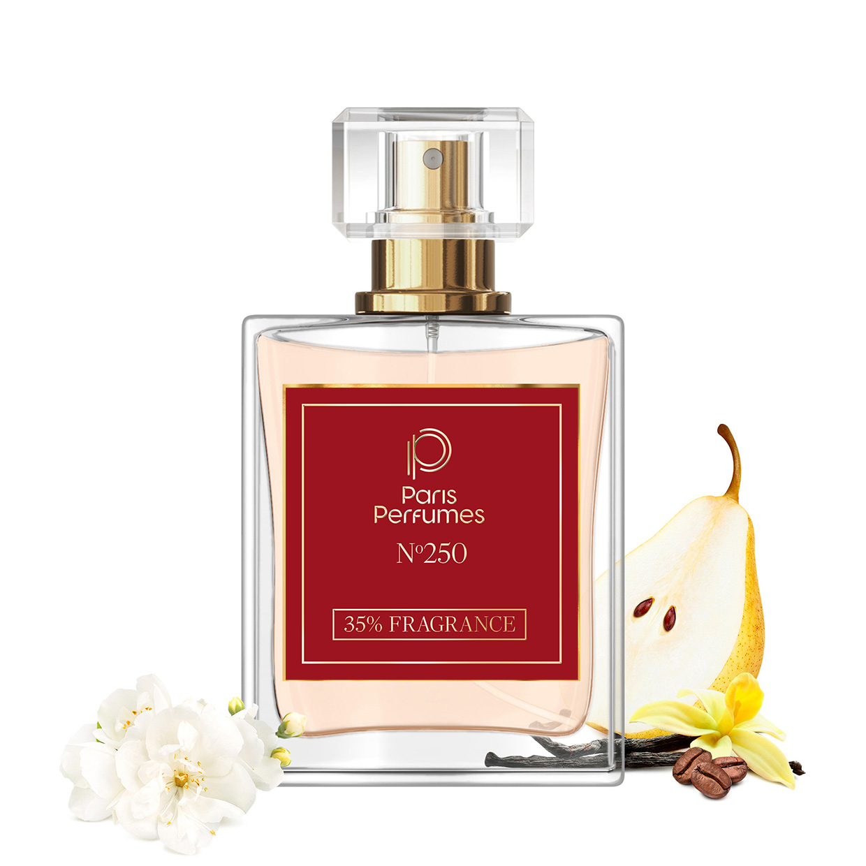 Juba esimestel sekunditel on tunda mahlane pirn ja apelsiniõis – puuviljased, heledad noodid, mis kutsuvad lõhna sügavamale avastamisele. Kompositsiooni süda paljastab jasmiini ja väljendusrikka kohvi – kontrasti, mis tõmbab tähelepanu ja mõjub meeltele nagu tugev, meeldejääv kohalolek.
